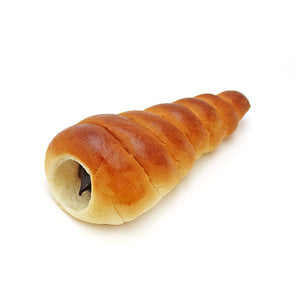 巻貝の形をした昔ながらの手作りパン。中にチョコレートクリームを入れました。