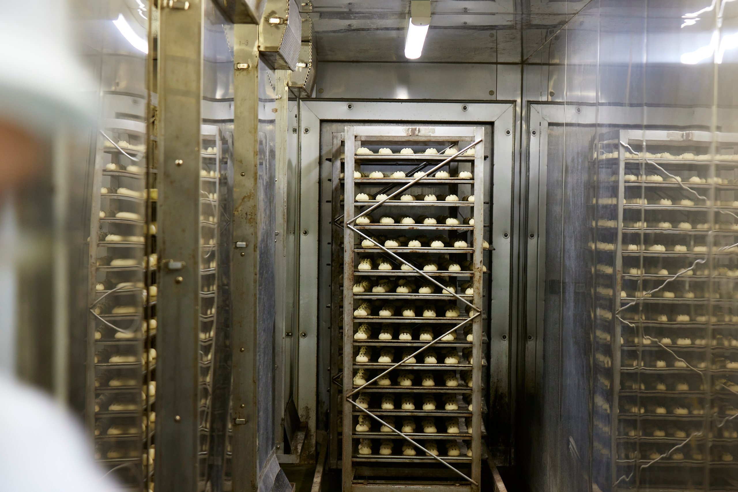 酒種あんぱんに最適な仕様に調合した小麦粉を使用。お水は季節や天候によって増減するため、毎日職人が生地の出来を見ながらお水の量を決めています。あんぱんの品質に影響を与える発酵は、温度0.1度・湿度0.1%の精度で、1回1回生地の状態を見極めながら管理をしています。