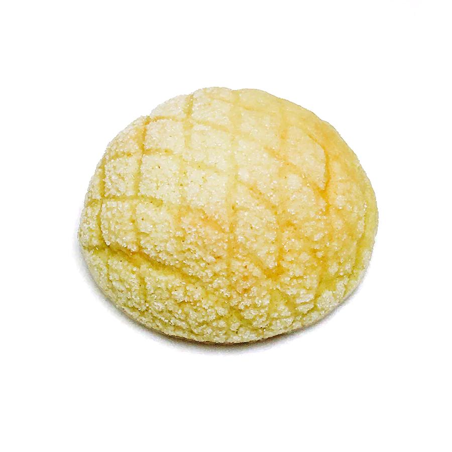クッキー生地(国内製造)、メロン風味フラワーペースト、小麦粉、糖漬けドライメロン、転化型液糖、牛乳、加糖卵黄、マーガリン、砂糖、パン酵母、食塩、メロンピューレ加工品、りんご酢/加工デンプン、グリシン、ベーキングパウダー、酸味料、着色料(紅麹、クチナシ、カロチノイド、紅花黄)、香料、pH調整剤、乳化剤、増粘多糖類、保存料(亜硫酸Na)、(一部に小麦・卵・乳成分・大豆・りんごを含む)