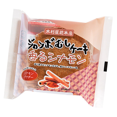 ジャンボむしケーキ香るシナモン:砂糖(国内製造)、卵、小麦粉、食用加工油脂、乳等を主要原料とする食品、シナモンパウダー/トレハロース、ベーキングパウダー、調味料(アミノ酸等)、カラメル色素、乳化剤、香料、(一部に小麦・卵・乳成分・大豆を含む)